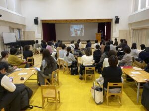 1月24日、ひかりこどもえんで公開研修会を開催し、あわせて関係者の皆さまに施設評価を行っていただきました。また他園の実践報告等もいただき保育の楽しさを参加者と共有することが出来ました。参加いただいた、先生方(園関係者・大学の教授・学生)ありがとうございました。